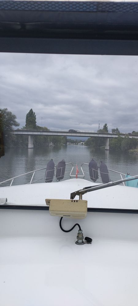 Wir frühstücken in unserem gemütlichen Wintergarten. Gegenüber werden mittels Kran schon die ersten Schiffe aus dem Wasser gehoben. Ist denn schon Saisonende? Unser Blick schweift nach links zur Absauganlage, der wir vor unserer Abfahrt noch einen Drink anbieten wollen. Was ist das für ein Zettel? HORS SERVICE – ausser Betrieb. Merde, die einzige Anlage am Murtensee, die wir ohne Schuhlöffel anfahren können! Rufend kommunizieren wir mit dem Hafenmeister, der grade den Kran bedient. Wann ist die Anlage wieder verfügbar? Er lacht. Das wissen die Götter. Willkommen in der Westschweiz.