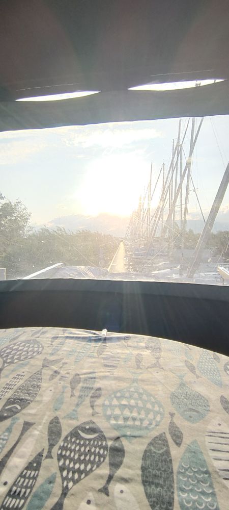 Heute morgen werden wir von Sonnenschein begrüsst. Wir gehen den Tag wieder einmal gemütlich an. Zuerst die Bettläuse vertreiben, dann eine kleine Katzenwäsche und den ersten Kaffee. So müsste eigentlich jeder Montag sein.