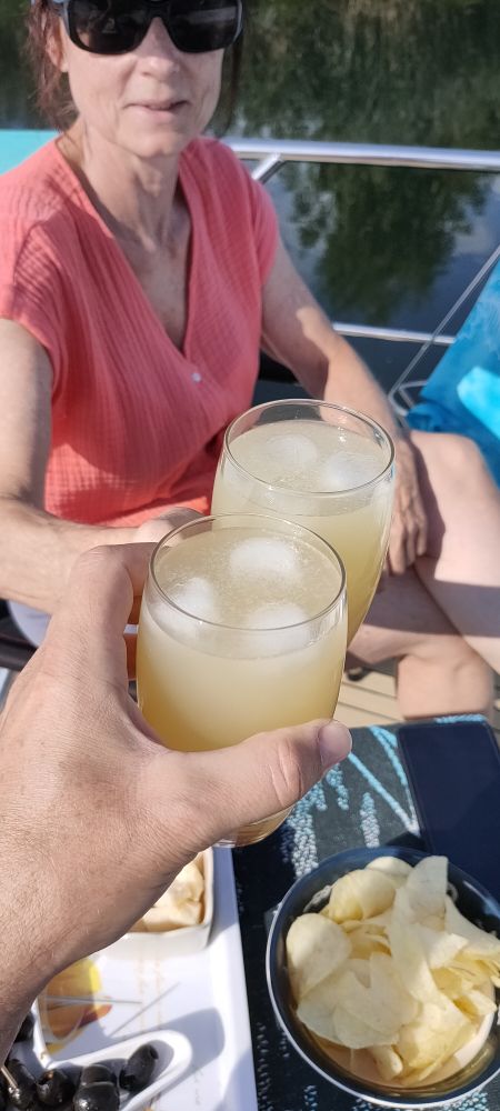 Beatrice und Hanspeter besuchen uns anschliessend auf unserem Achterschiff. So lassen wir gemütlich den Tag bei einem Absacker miteinander ausklingen.