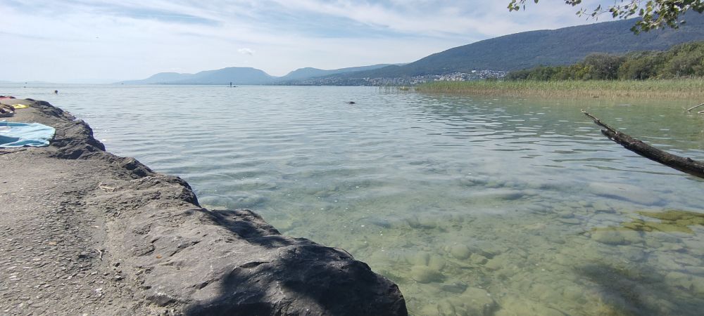 Auf dem Neuenburgersee herrscht ein bisschen Wind, aber das Wasser ist immer noch ruhig und einladend. Wir geniessen auch hier die Einsamkeit zum Baden, auch wenn in der Ferne das eine oder andere Schiff zu sehen ist. Bei seiner Grösse kriegt man im Neuenburgersee aber so oder so das totale Infinity-Pool-Erlebnis.