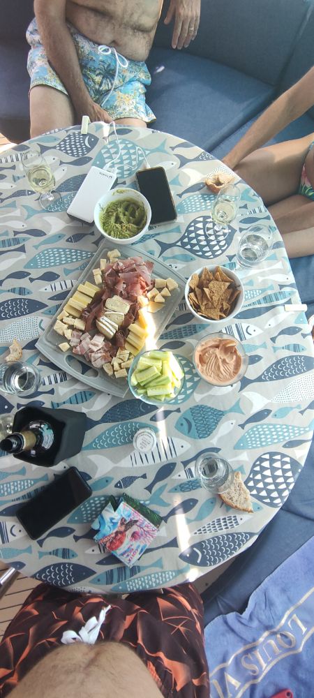 Zurück auf den Booten widmen wir uns dem Schema F: Baden, Apéro, Fleisch grillen, Essen, Plaudern, Schlafen legen.