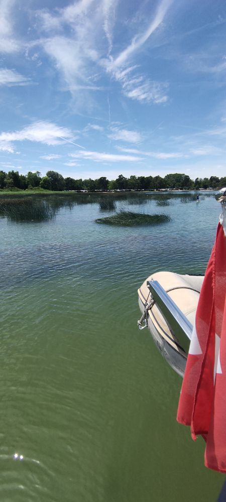 Wir gehen den Tag gemütlich an, denn schliesslich haben wir Urlaub. Gegen 10 Uhr lösen wir die Leinen und verlassen unseren Hafen durch den kleinen Kanal Richtung See.
