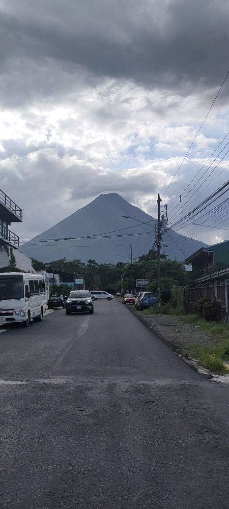 Fortuna ist massiv auf Tourismus gebürstet. Es gibt zahlreiche Restaurants und Souvenirläden. An jeder Ecke werden Touren zu allen möglichen Attraktionen angeboten – Wasserfälle, Hängebrücken, Kaffeeplantagen, Dschungelexkursionen. Im Zentrum des Geschehens liegt der mächtige Vulkan Arenal. Allgegenwärtig thront er mit seinen 1657 Metern Höhe über dem Städtchen. Die Besteigung ist verboten, da er zu den aktivsten Vulkanen der Welt gehört. Wir nutzen unsere Einkaufstour für ein bisschen Sightseeing.