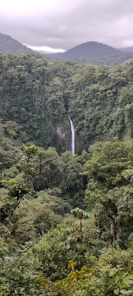 Es ist 14:30 Uhr als wir uns entscheiden müssen: hocken bleiben oder nochmal raus. Um 15 Uhr startet eine Führung durch die North Fields Kaffeeplantage. Also vámonos. Wir treffen fünf Minuten vorher ein. Leider alle Plätze ausgebucht. Kein Problem, 5 Minuten weiter ist der Fortuna Wasserfall. Dabei handelt es sich – Überraschung! – um Wasser, das 70m einen Berg herunterstürzt. «Lächerlich» mag man sich als Schweizer denken. Stimmt, aber hier ist alles wärmer und grüner. Nichts wie hin.