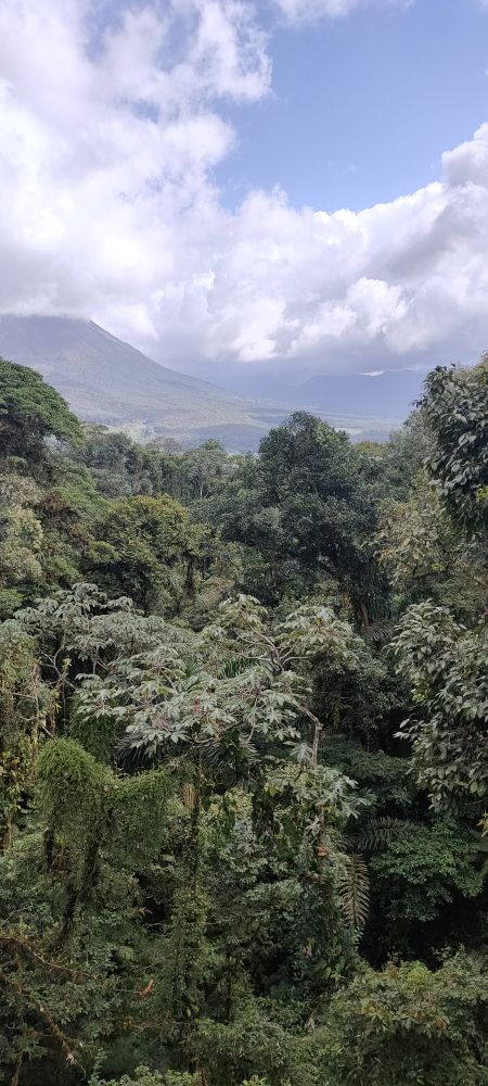 Unser Ziel heisst La Fortuna und liegt etwa 120 km nördlich von hier. Ein Gebirge muss überquert werden. Die Navi-App WAZE findet einen Weg um den immer noch präsenten Stau. Fahrzeit 2h30 statt 3h. Also Venga Venga! Nach ein paar Metern stockend biegen wir links ins Wohnquartier ab. Es geht steil bergauf. Die Qualität der Strassen und Häuser nimmt stetig zu. In meinen Ohren pfeift der Druckunterschied durch die neu erworbenen Löcher. Es gäbe hübsche Aussichtspunkte zu bestaunen, aber einerseits wollen wir unser Ziel noch bei Tageslicht erreichen und andererseits liegt eh alles im Nebel. Starker Regen setzt ein und begleitet uns beinahe die ganze Zeit durch enge Kurven sowie stramme Steigungen, ohne an Intensität zu verlieren. Ein Pickup vor uns gibt den Leithammel. Scheinbar hat er das gleiche Ziel und will ebenso vor Einbruch der Dunkelheit ankommen. Venga, compañero!