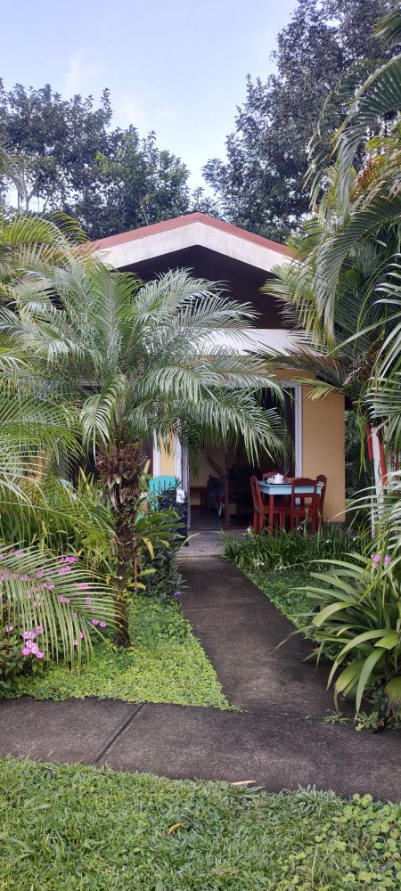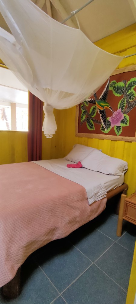 Hotelinhaber José begrüsst uns herzlich und zeigt uns ohne Umschweife die örtlichen Attraktionen auf einer Karte. Wir könnten noch heute eine Kaffee-, Kakao- und Zuckerrohr-Tour mitmachen, ein Fahrer würde uns um 14:30 Uhr hier abholen kommen. Abgemacht, compañero. Aber jetzt wollen wir unser Gepäck aufs Zimmer bringen und etwas Kleines essen. Bei dem «Zimmer» handelt es sich um einen wunderschönen Bungalow mit Kingsize Bett und gedeckter Veranda.