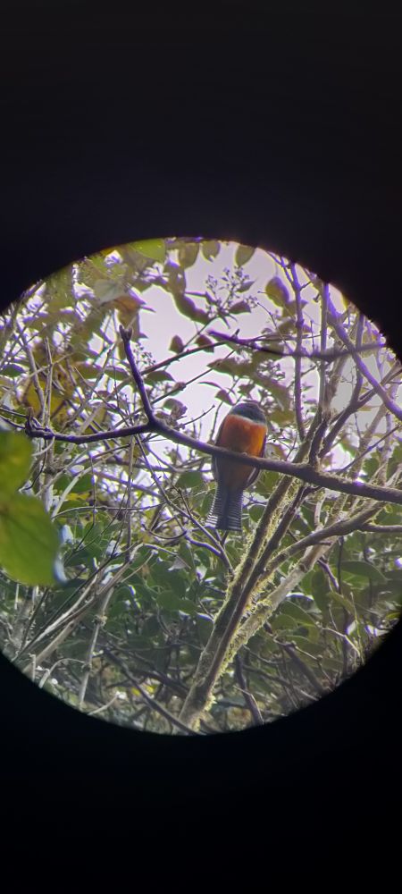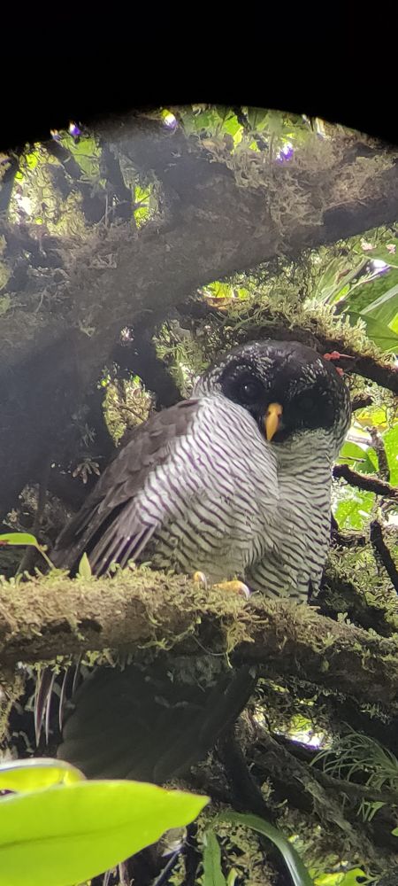 Wir erreichen die erste Flagge und Jason spielt mit uns das Sichte-das-Faultier-Spiel. Keine Chance. Er versucht es mit Erklärungen bei welchem Baum wir durch welche Äste durchgucken müssen. Immer noch nix. Jason stellt das Stativ mit dem Teleskop auf den Boden und richtet es aus. Ich überreiche ihm nach Anfrage mein Handy. Kamera voran hält er es an das Okkular und wir bekommen Folgendes zu sehen: