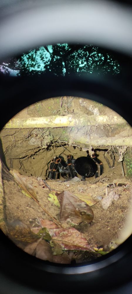 Als besondere Dreingabe betrachten wir eine Tarantel, die laut Olmán vor zwei Wochen ihr Erdloch nah am Weg gegraben hatte.
