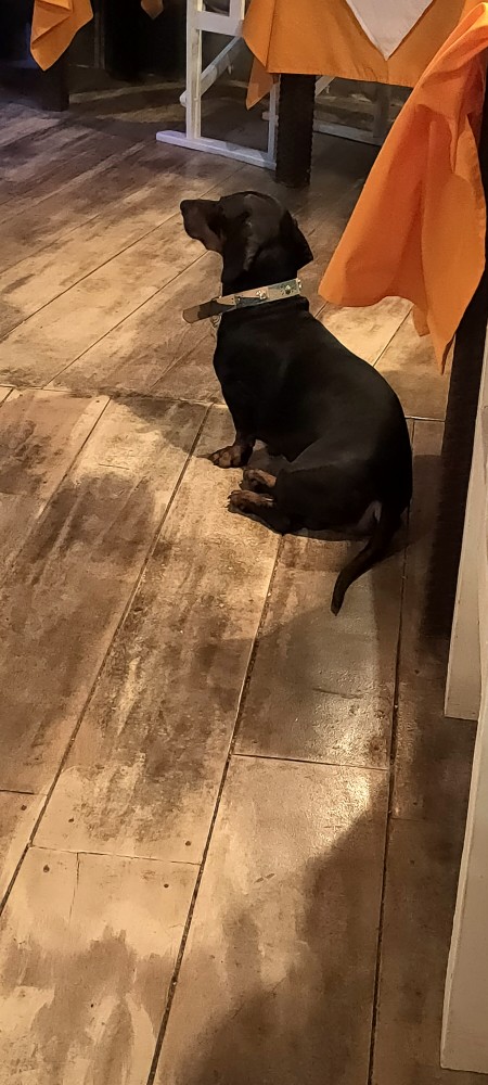 Zur Krönung des Abends finden wir uns um 19 Uhr im Restaurant La Tropicana ein. Hier erleben wir einen Flair von französischem Kolonialismus – jedenfalls das, was ich mir darunter vorstelle. Wahrscheinlich, weil der Wirt und Inhaber zufälligerweise Franzose ist. Zunächst begrüsst uns einer der Haushunde an der Strasse und watschelt uns voran, so als möchte er uns zu unserem Tisch geleiten (was er irgendwie auch tut). Ein Laubengang führt an einer alten, schneeweissen Villa vorbei zu einer hölzernen, überdachten Veranda. Der Garten mit Pool liegt dahinter einen Stock tiefer und ist von mächtigen Palmen umgeben. Geschickt platzierte Beleuchtung verleiht der Szene eine einmalige Ästhetik. Ich kann’s leider nur mit Worten beschreiben, weil wir es irgendwie verpasst haben, die Umgebung zu fotografieren. Hier ersatzweise ein Bild von einem Hund.