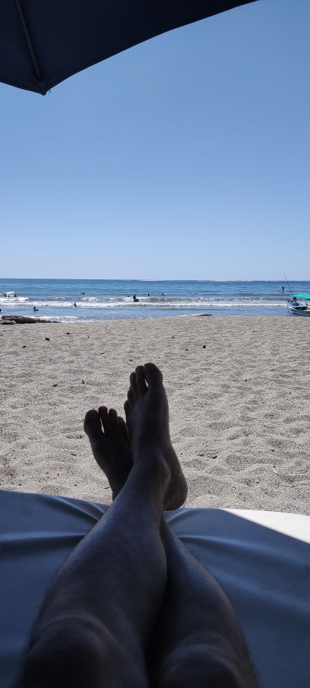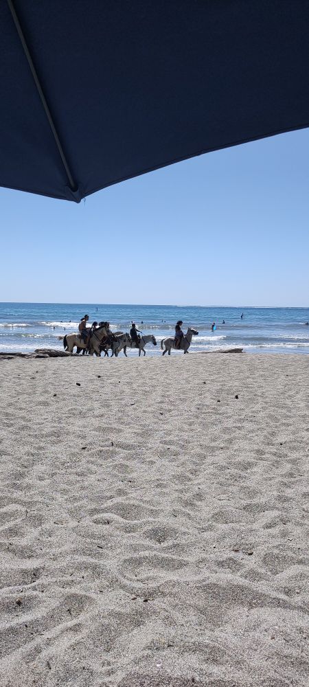 Unser Ziel liegt auf der Pazifikseite, einmal über die gesamte Halbinsel rüber. Davon trennen uns noch gute anderthalb Stunden Fahrt durch hügeliges Gelände. Am Pazifik erreichen wir zuerst den Ort Samara. Hier machen wir Halt. Primär um etwas zu essen, aber auch um ein wenig am Strand zu spazieren und zu gucken, was es hier so alles gibt. Beim Aussteigen prallen wir gegen eine Wand aus 35° warmer Luft.
