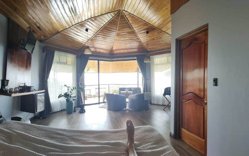 Die beiden sind vor zwei Jahren von der Schweiz nach Costa Rica gezogen. Ihre Finca umfasst mehrere Hektaren Dschungel, den sie von ihrer prachtvollen Veranda aus überblicken. Ingesamt sieht der ganze Talkessel ein bisschen wie ihr privates Valle Antón aus. Wir halten bei einem Willkommensbierchen einen Plausch und geniessen den bezaubernden Ausblick rundherum.