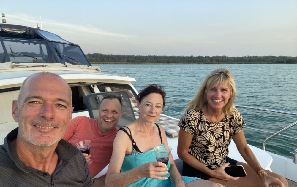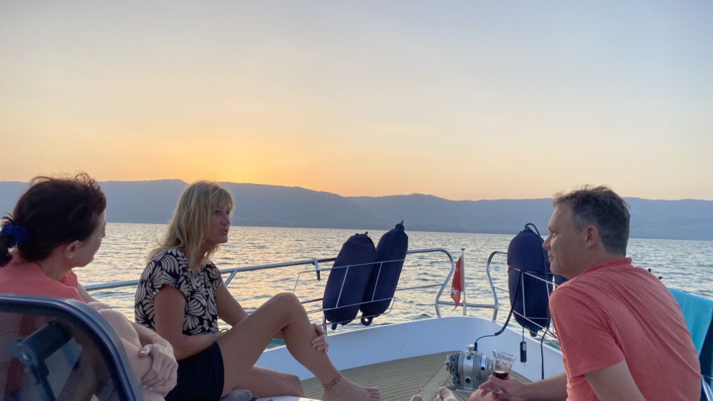Für uns geht die Reise weiter bis zur Seemitte, wo wir den Motor stoppen und uns ganz den warmen Temperaturen, dem Badevergnügen und den diversen Snacks und Drinks hingeben.