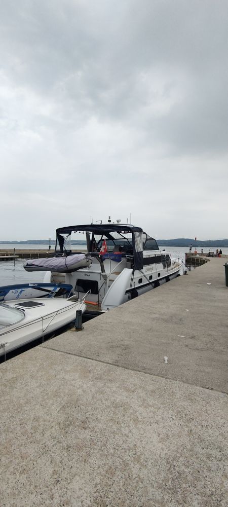 Die Fahrt verläuft unspektakulär und wir kommen gut voran. In Murten machen wir einen Sandwichhalt bei meinem Arbeitgeber. Und da dieser zufälligerweise am selben Ort auch noch Lebensmittel verkauft, besorgen wir uns ein paar Vorräte. Entspannt fahren wir weiter zum Hafen von Vallamand am Murtensee, weil wir da noch etwas abholen möchten.