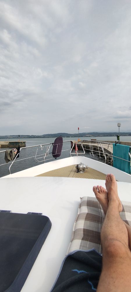 Ein weiteres erfrischendes Bad mitten im See – oder «a Hupferl» auf gut bayrisch – später starten wir die Maschine und legen Ruder für Kurs auf den Broyekanal.