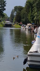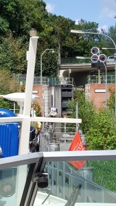 An der benachbarten Schleuse standen zu der Zeit gut 15 Schiffe an. Das bedeutet gute 2.5 Stunden Wartezeit. Glücklicherweise lag unser heutiges Ziel, der Anleger des Gasthauses «Zum Achter», 2km in der entgegengesetzten Richtung.