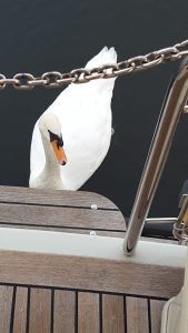Wir liessen vor dem Ablegen unsere Charterfirma noch telefonisch wissen, dass die Antriebswelle singt – nein, nicht «oh du schöner Westerwald», sondern ein helles Summen – und zwar bei einer Motorumdrehungszahl zwischen 1100 und 1600. Darunter und darüber ist nichts zu hören. Eine Tonaufnahme sendeten wir per Whatsapp an den zuständigen Techniker. Antwort soll in Kürze folgen.