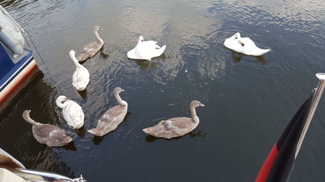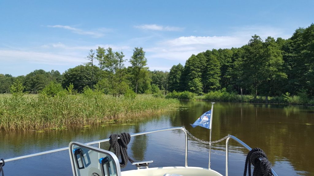Heute morgen um 8:45 Uhr lösten wir die Leinen und liefen in das Revier der Mecklenburgischen Seenplatte aus. Wo man hinschaut, einfach Natur pur. Die stetig mäandernde Havel führt durch ein einziges Meer von Schilf und Seerosen durch kilometerweise Wald. Dazwischen immer wieder Reiher, Enten und Schwäne, die dieses Naturreservat bewohnen.
