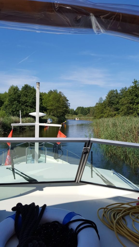 Also erst mal ausgeschlafen und so gegen 9:30 von der Marina Wolfsbruch abgelegt. Zumeist führte die Strecke über Seen, wo wir unserem Volvo Penta Maschinchen mehr Umdrehungen gönnen dürfen (nur um unserer Antriebswelle das Singen abzugewöhnen, versteht sich).