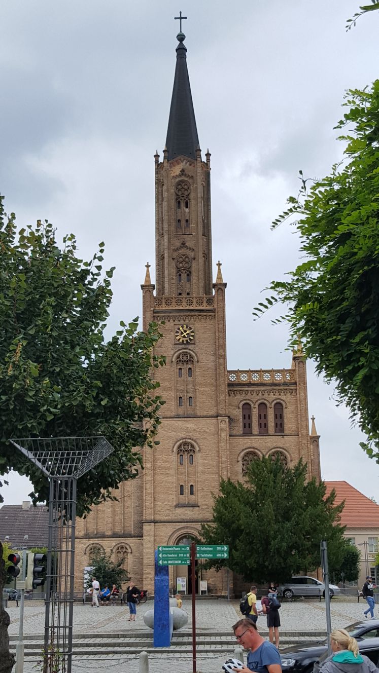 Die Kirche zu Fürstenberg Danach war Bootsreinigung angesagt, Lydia draussen mit Pütz und Schrubber, Patrick drin mit Staubsauger (ja, sowas gibts hier an Bord). Beim anschliessenden Apéro legten wir auch den neuen Plan für die nächsten Tage fest – wir steuern die Rheinsberger Gewässer an, die als die «Perle der Seenplatte» gehandelt werden. Schau mer mal.