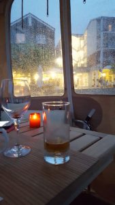 So sassen wir mit unserem feudalen zNacht auf dem Achterschiff, als plötzlich starker Regen einsetzte und die Tische vor dem Restaurant sich allmählich leerten…