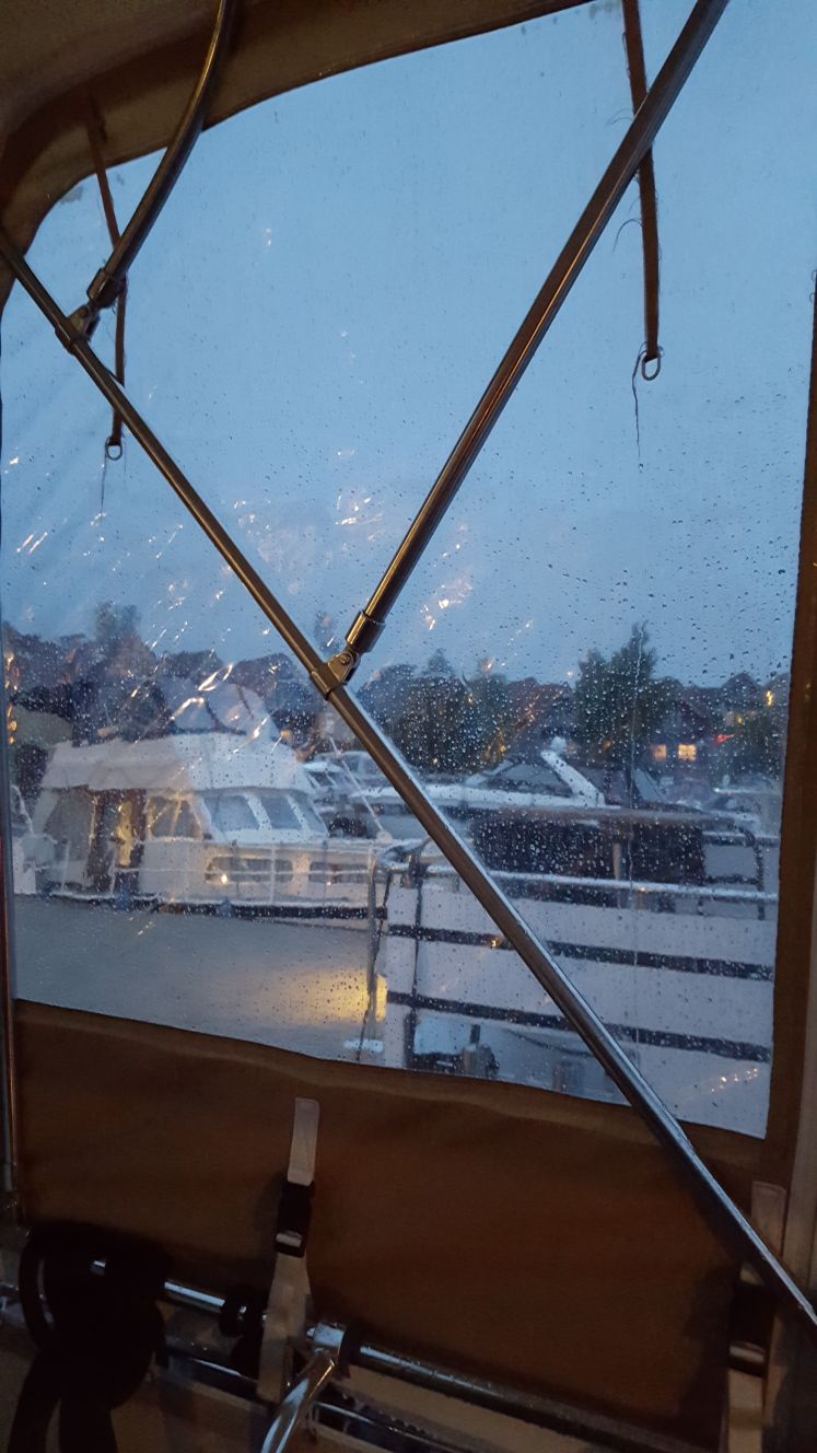 Um 11:30 Uhr legten wir in der Marina Rheinsberg an. Den Rest des Tages verbrachten wir an Bord, denn es schüttete mehrmals wie aus Kübeln.