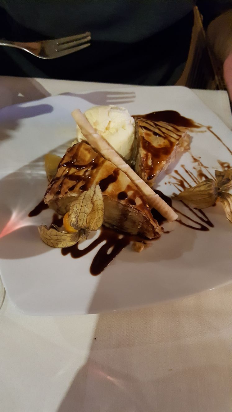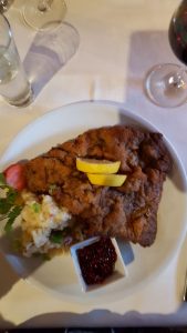 Danach besagter Stadtrundgang und etwas später Abendessen im Ratskeller. Wienerschnitzel und zum Dessert ein Stück Apfelstrudel.