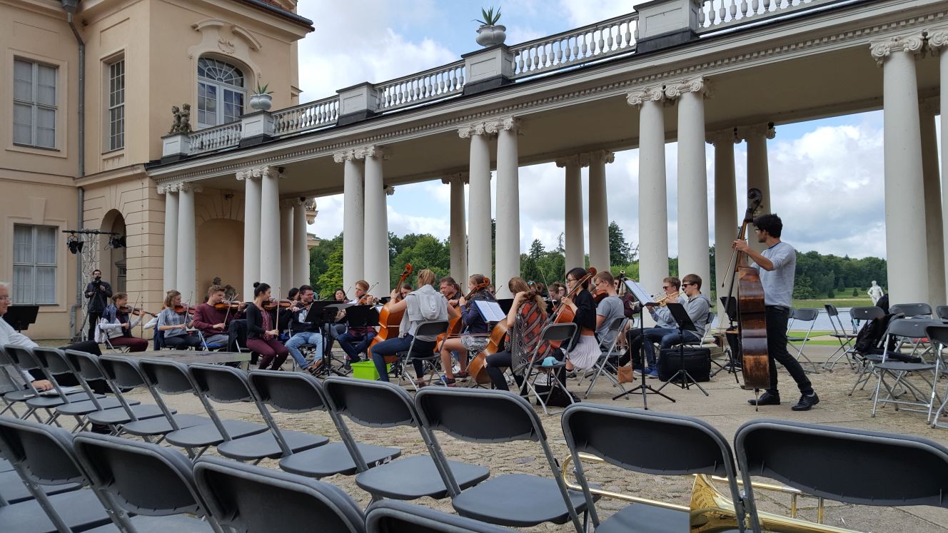 Junge Philharmonie Brandenburg, hier noch in Jeans und T-Shirt Eine ganz besondere Atmosphäre, die Heimstätte vom grossen Fritz (und später vor allem seines Bruders Heinrich) bei live gespielter klassischer Musik zu begehen.